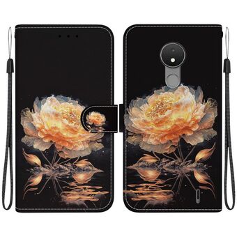 For Nokia C21 Crystal Texture Colored Drawing Leather Phone Case(Gold Peony)