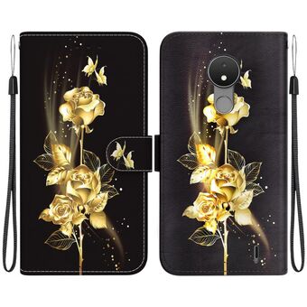 For Nokia C22 Crystal Texture Colored Drawing Leather Phone Case(Gold Peony)