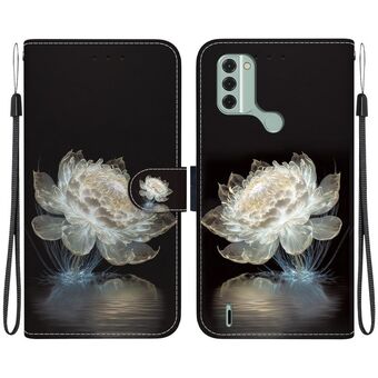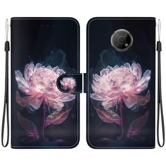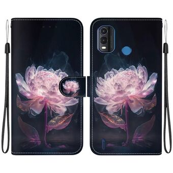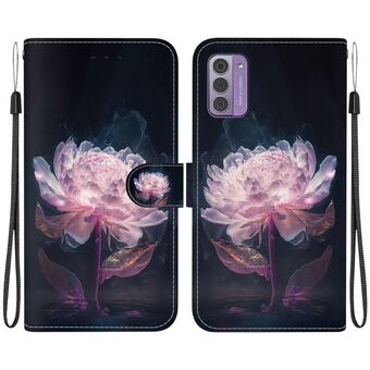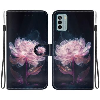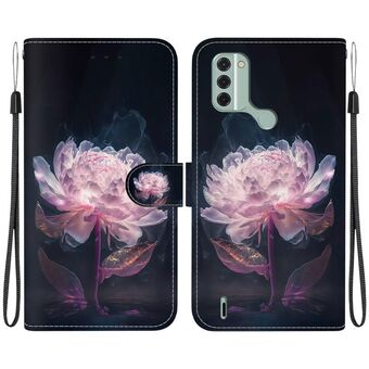 For Nokia G300 Crystal Texture Colored Drawing Leather Phone Case(Purple Peony)