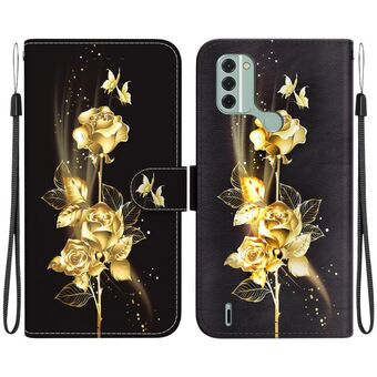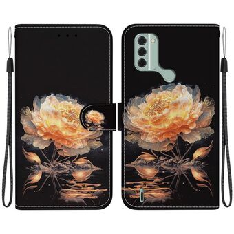 For Nokia G300 Crystal Texture Colored Drawing Leather Phone Case(Gold Peony)