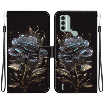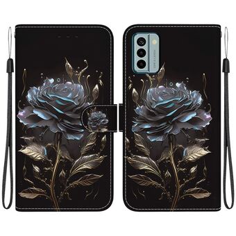 For Nokia G60 Crystal Texture Colored Drawing Leather Phone Case(Black Rose)