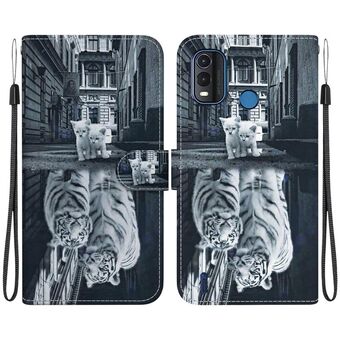 For Nokia C21 Crystal Texture Colored Drawing Leather Phone Case(Cat Tiger Reflection)