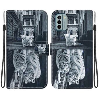 For Nokia G11 Plus Crystal Texture Colored Drawing Leather Phone Case(Cat Tiger Reflection)