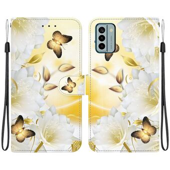 For Nokia G22 Crystal Texture Colored Drawing Leather Phone Case(Gold Butterfly Epiphyllum)