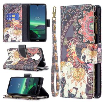 For Nokia G20 / G10 Colored Drawing Pattern Zipper Horizontal Flip Leather Case with Holder & Card Slots & Wallet(Flower Elephants)