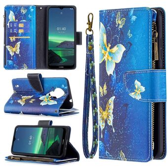 For Nokia G20 / G10 Colored Drawing Pattern Zipper Horizontal Flip Leather Case with Holder & Card Slots & Wallet(Gold Butterfly)
