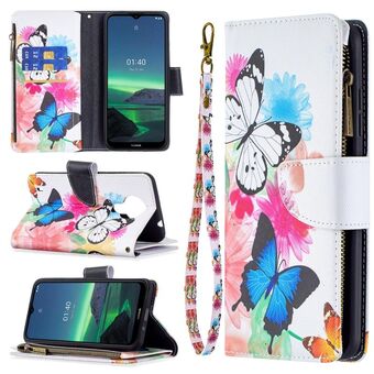 For Nokia 1.4 Colored Drawing Pattern Zipper Horizontal Flip Leather Case with Holder & Card Slots & Wallet(Two Butterflies)