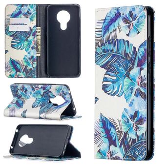 For Nokia 5.3 Colored Drawing Pattern Invisible Magnetic Horizontal Flip PU Leather Case with Holder & Card Slots & Wallet(Blue Leaves)