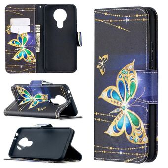 For Nokia 5.3 Colored Drawing Pattern Invisible Magnetic Horizontal Flip PU Leather Case with Holder & Card Slots & Wallet(Gold Butterflies)