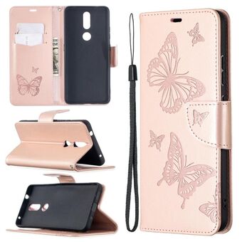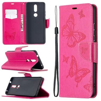 For Nokia 2.4 Two Butterflies Embossing Pattern Horizontal Flip Leather Case with Holder & Card Slot & Wallet & Lanyard(Rose Red)