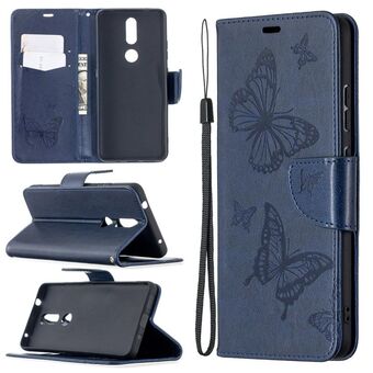 For Nokia 2.4 Two Butterflies Embossing Pattern Horizontal Flip Leather Case with Holder & Card Slot & Wallet & Lanyard(Dark Blue)