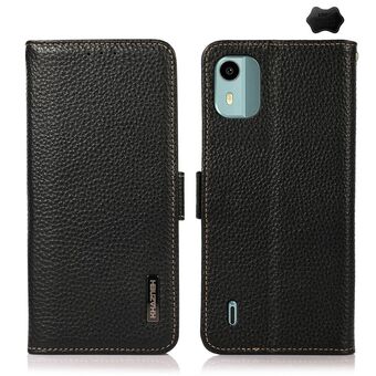 For Nokia C12 4G KHAZNEH Side-Magnetic Litchi Genuine Leather RFID Phone Case(Black)
