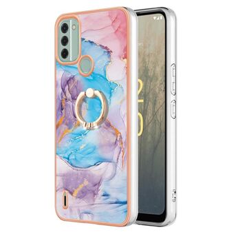 For Nokia C31 Electroplating IMD TPU Phone Case with Ring(Blue Marble)
