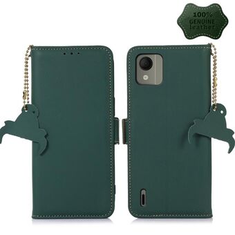 For Nokia C12 4G KHAZNEH Custer Genuine Leather RFID Phone Case(Green)
