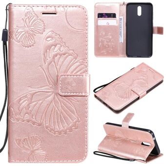 For Nokia 2.3 3D Butterflies Embossing Pattern Horizontal Flip Leather Case with Holder & Card Slot & Wallet(Rose Gold)