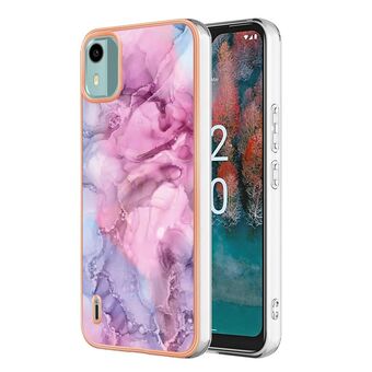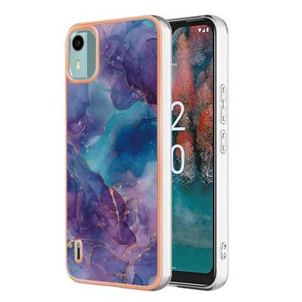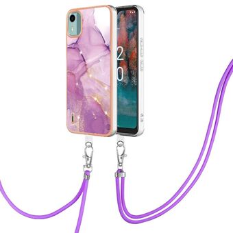Θήκη τηλεφώνου για Nokia C12 με ηλεκτρολυτική επίστρωση, σχέδιο μάρμαρου, διπλής όψης IMD με κορδόνι (Μωβ 001)