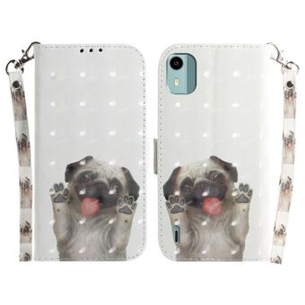 Θήκη τηλεφώνου από δέρμα με σχέδιο και αναδιπλούμενο καπάκι για Nokia C22 (Pug)