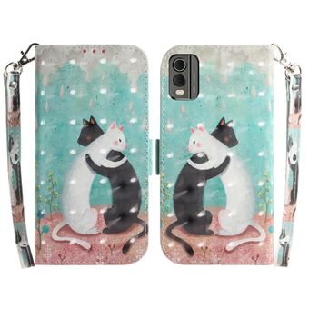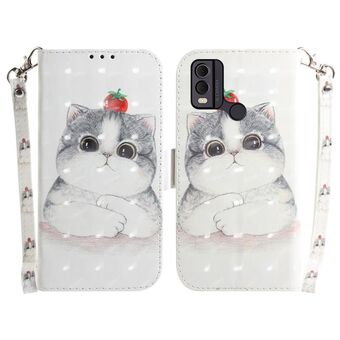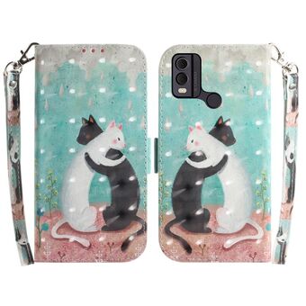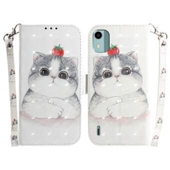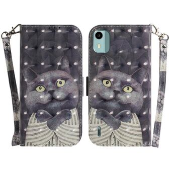 Θήκη τηλεφώνου δερμάτινη, οριζόντια, αναδιπλούμενη, με τρισδιάστατο έγχρωμο σχέδιο για Nokia C22 (Χαριτωμένη Γάτα)