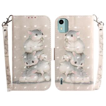 Θήκη τηλεφώνου δερμάτινη, οριζόντια, αναδιπλούμενη, με έγχρωμα 3D σχέδια για Nokia C22 (Σκιουράκια)