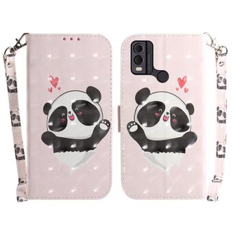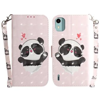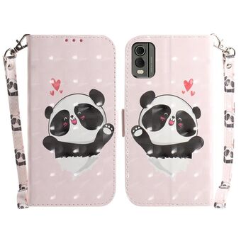 Θήκη τηλεφώνου δερμάτινη, οριζόντια, αναδιπλούμενη, με τρισδιάστατο έγχρωμο σχέδιο για Nokia C22 (Heart Panda)