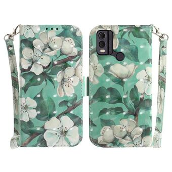 Θήκη τηλεφώνου δερμάτινη, οριζόντια, αναδιπλούμενη, με έγχρωμα 3D σχέδια για Nokia C22 (Ακουαρέλα Λουλούδι)