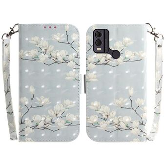Θήκη τηλεφώνου δερμάτινη, οριζόντια, αναδιπλούμενη, με έγχρωμο 3D σχέδιο για Nokia C22 (Μαγνολία)