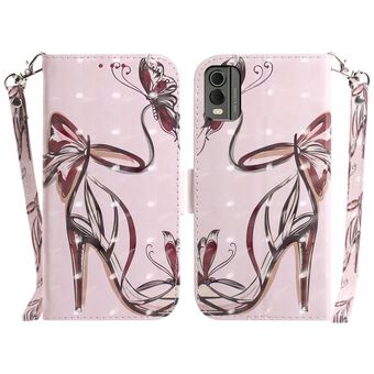 Θήκη τηλεφώνου δερμάτινη, οριζόντια, αναδιπλούμενη, με τρισδιάστατο έγχρωμο σχέδιο για Nokia C22 (πεταλούδα με ψηλοτάκουνα).