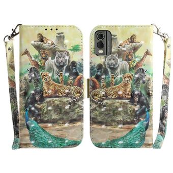 Θήκη τηλεφώνου δερμάτινη, οριζόντια, αναδιπλούμενη, με έγχρωμα 3D σχέδια για Nokia C22 (Ζωολογικός κήπος)