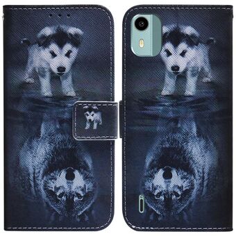Θήκη τηλεφώνου από δέρμα με σχέδιο και αναδιπλούμενο καπάκι για Nokia C22 (Λύκος και Σκύλος)