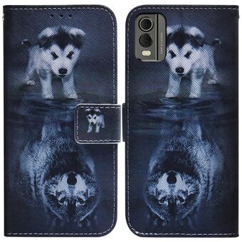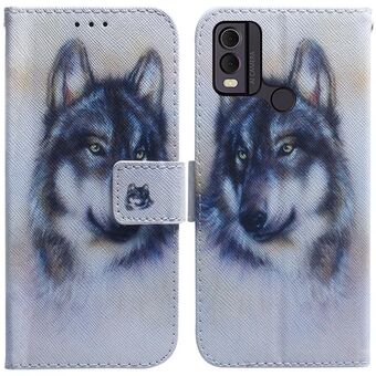 Θήκη τηλεφώνου από δέρμα με σχέδιο και αναδιπλούμενο καπάκι για Nokia C22 (Λευκός Λύκος)