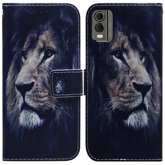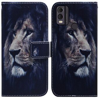 Θήκη τηλεφώνου από δέρμα με σχέδιο και αναδιπλούμενο καπάκι για Nokia C12 (Λιοντάρι)