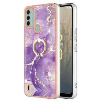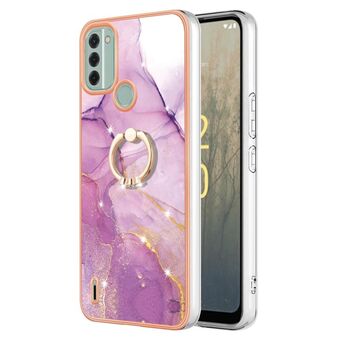 Θήκη τηλεφώνου για Nokia C31 με ηλεκτρολυτική επίστρωση, σχέδιο μάρμαρου, διπλής όψης IMD με δαχτυλίδι (Μωβ 016)