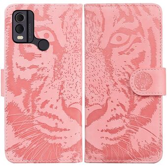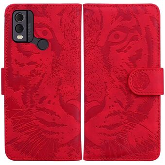 Θήκη τηλεφώνου από δέρμα με σχέδιο Tiger Embossing για Nokia C22 (Κόκκινο)