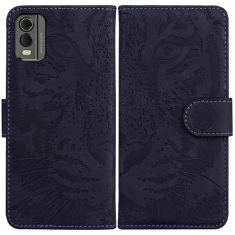Θήκη τηλεφώνου από δέρμα με σχέδιο Tiger Embossing για Nokia C32 (Μαύρο)