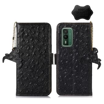 For Nokia XR21 Ostrich Pattern Genuine Leather RFID Phone Case(Black)