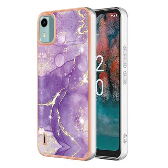 For Nokia C12 Electroplating Marble Dual-side IMD Phone Case(Purple 001)