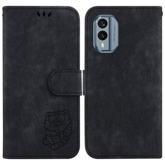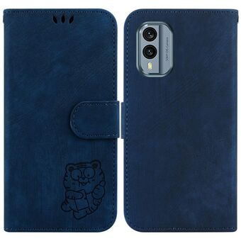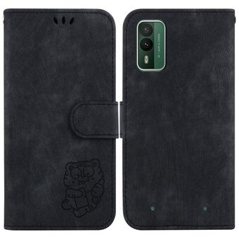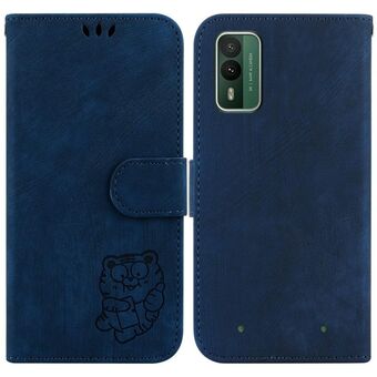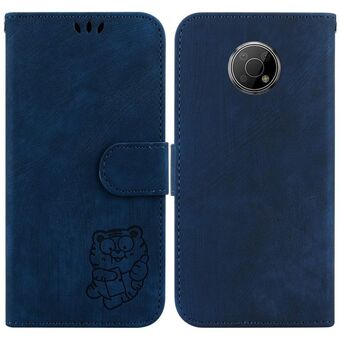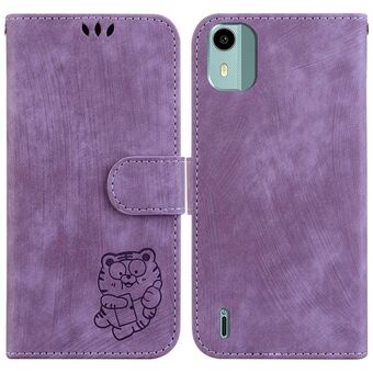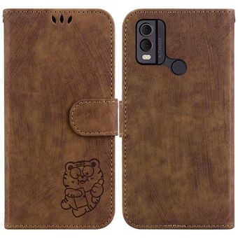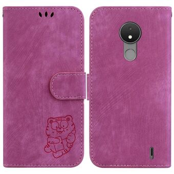 Θήκη τηλεφώνου από ανάγλυφο δέρμα για Nokia C22 Little Tiger (Πράσινο)