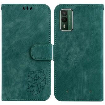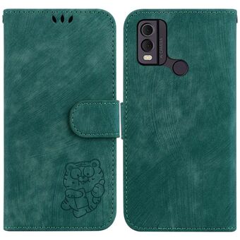 Θήκη τηλεφώνου από δέρμα με ανάγλυφο σχέδιο "Little Tiger" για Nokia C12 (Πράσινο)