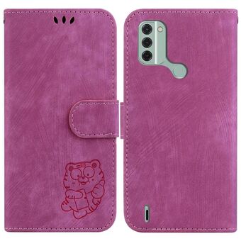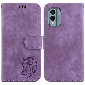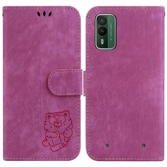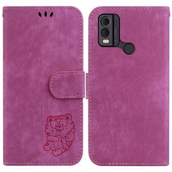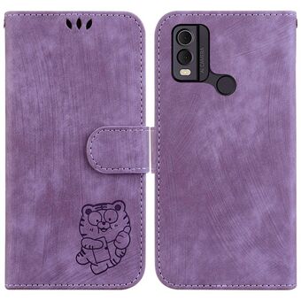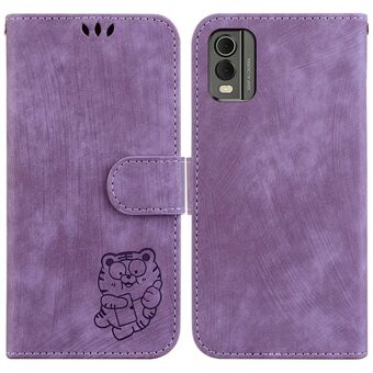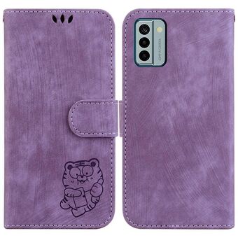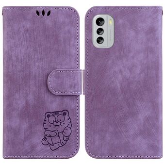 Θήκη τηλεφώνου από ανάγλυφο δέρμα για Nokia G42 Little Tiger (Μωβ)