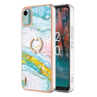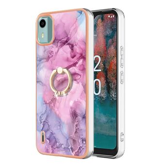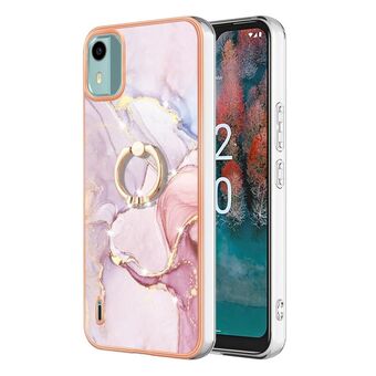 Θήκη κινητού τηλεφώνου Nokia C12 Επιμετάλλωση IMD TPU με Δαχτυλίδι (Λευκό Μάρμαρο)