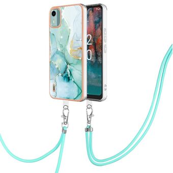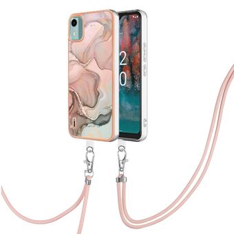 Θήκη τηλεφώνου για Nokia C12 με ηλεκτρολυτική επίστρωση, σχέδιο μάρμαρου, διπλής όψης IMD με κορδόνι (Χρυσό Ρόδι 015)