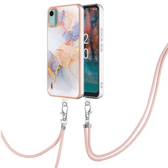 Θήκη τηλεφώνου Nokia C12 Επιμετάλλωση IMD TPU με Λουρί (Λευκό Μάρμαρο)