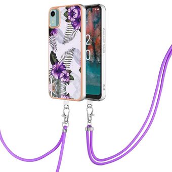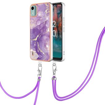 Θήκη τηλεφώνου για Nokia C12 με ηλεκτρολυτική επίστρωση, σχέδιο μάρμαρου, διπλής όψης IMD με κορδόνι (Μωβ 002)