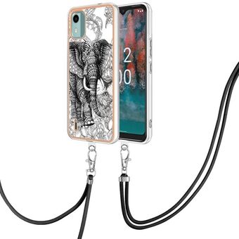 Θήκη τηλεφώνου για Nokia C12 με ηλεκτρολυτική επιμετάλλωση, διπλής όψης IMD με κορδόνι (Totem Elephant)