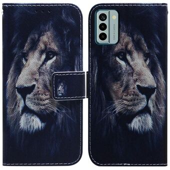 Θήκη τηλεφώνου από δέρμα με σχέδιο λιονταριού και αναδιπλούμενο καπάκι για Nokia G22 (χρωματιστό σχέδιο)