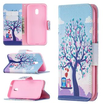 Θήκη δέρματος οριζόντιας αναδίπλωσης με σχέδιο πολύχρωμου σχεδίου για Nokia C1 Plus με βάση & υποδοχές καρτών & πορτοφόλι (Κουκουβάγια)