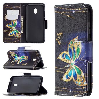 Θήκη δέρματος οριζόντιας αναδίπλωσης με σχέδιο πολύχρωμης ζωγραφικής για Nokia C1 Plus με βάση & υποδοχές καρτών & πορτοφόλι (Μεγάλη Πεταλούδα)