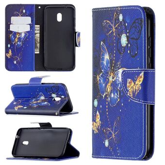 Θήκη δέρματος οριζόντιας αναδίπλωσης με σχέδιο πολύχρωμης ζωγραφικής για Nokia C1 Plus με βάση & υποδοχές καρτών & πορτοφόλι (Μπλε Πεταλούδες)