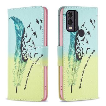Θήκη τηλεφώνου από δέρμα με έγχρωμο σχέδιο για Nokia C12 (Φτερό)