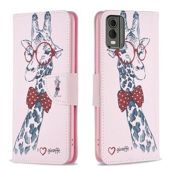 Θήκη τηλεφώνου δερμάτινη με σχέδιο πολύχρωμου ζωγραφικού μοτίβου για Nokia C22 (Καμηλοπάρδαλη)